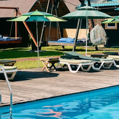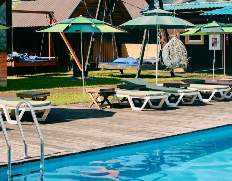 На территории обустроены зоны отдыха, беседки и две мангальные площадки - одна в свободном доступе, второй можно пользоваться только на условиях аренды. Работает банный комплекс с двумя банями – большой и малой. В жаркие дни гостей порадует открытый уличный бассейн. В качестве активного досуга предлагаются велопрогулки - велосипеды можно взять в прокате, и настольный теннис. Для детей оборудован детский городок с качелями на свежем воздухе и игровая комната. Для максимального удобства постояльцев работает интернет wi-fi, доступный на всей территории турбазы.